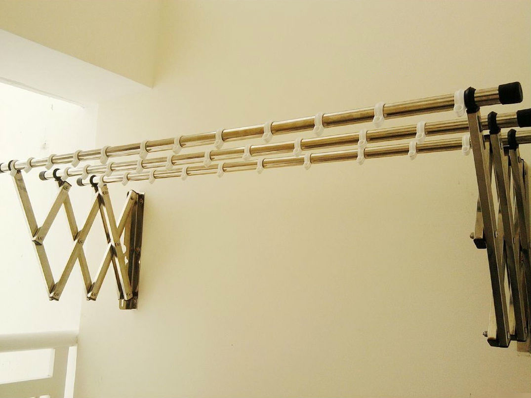 Giàn phơi thông minh gắn tường làm bằng inox, không lo gỉ sắt với giá thành phải chăng, không hề đắt đỏ như bạn nghĩ. Do đó, mức độ sử dụng cực kì phổ biến.